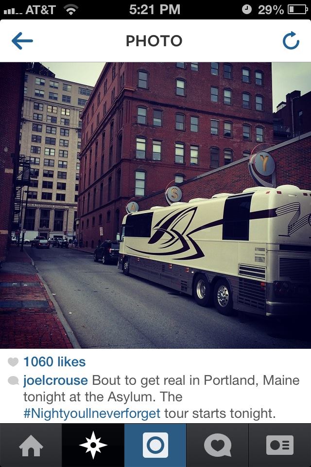 Joel was excited to be back on the road, after his last touring stint with Darius Rucker and the Eli Young Band ended in early October. The Crouse crew will be jumping in Love & Theft’s tour bus instead of their ‘ol van this time around… how nice! (Pictured below!)