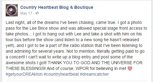 Facebook post the following day… are you a fan of Country Heartbeat online?