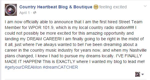 At the end of March I interviewed for a position on the Street Team at my favorite country radio station, WPOR 101.9. Out of over 150 applicants, I managed to score one the coveted spots on the small Street Team representing WPOR and all of it’s sister stations. I worked a couple of events in April, but May was the big month for me when I realized that all of my hard work and dreams were turning into reality. (You can check out the Throwback Thursday post “Tour Bus Hang with Lee Brice” for more on that day!)